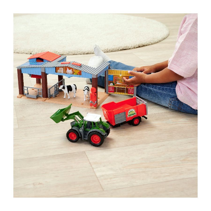 Součástí sady je stodola s otevíracími dveřmi, traktor Fendt s přívěsem, zvířata a různé doplňky, které společně vytvářejí realistické prostředí farmy. Děti mohou nakládat seno, převážet zvířata a starat se o vlastní farmu – stejně jako dospělí!