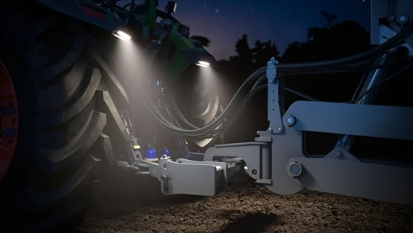 Systém svítí obzvláště při noční práci s rotačními branami nebo při sledování sběru píce na sběrných vozech či lisech. Cílené osvětlení prostoru zadního nářadí zajišťuje úplnou kontrolu, zvyšuje bezpečnost práce a zvyšuje produktivitu – a to i při dlouhých operacích do pozdních nočních hodin.